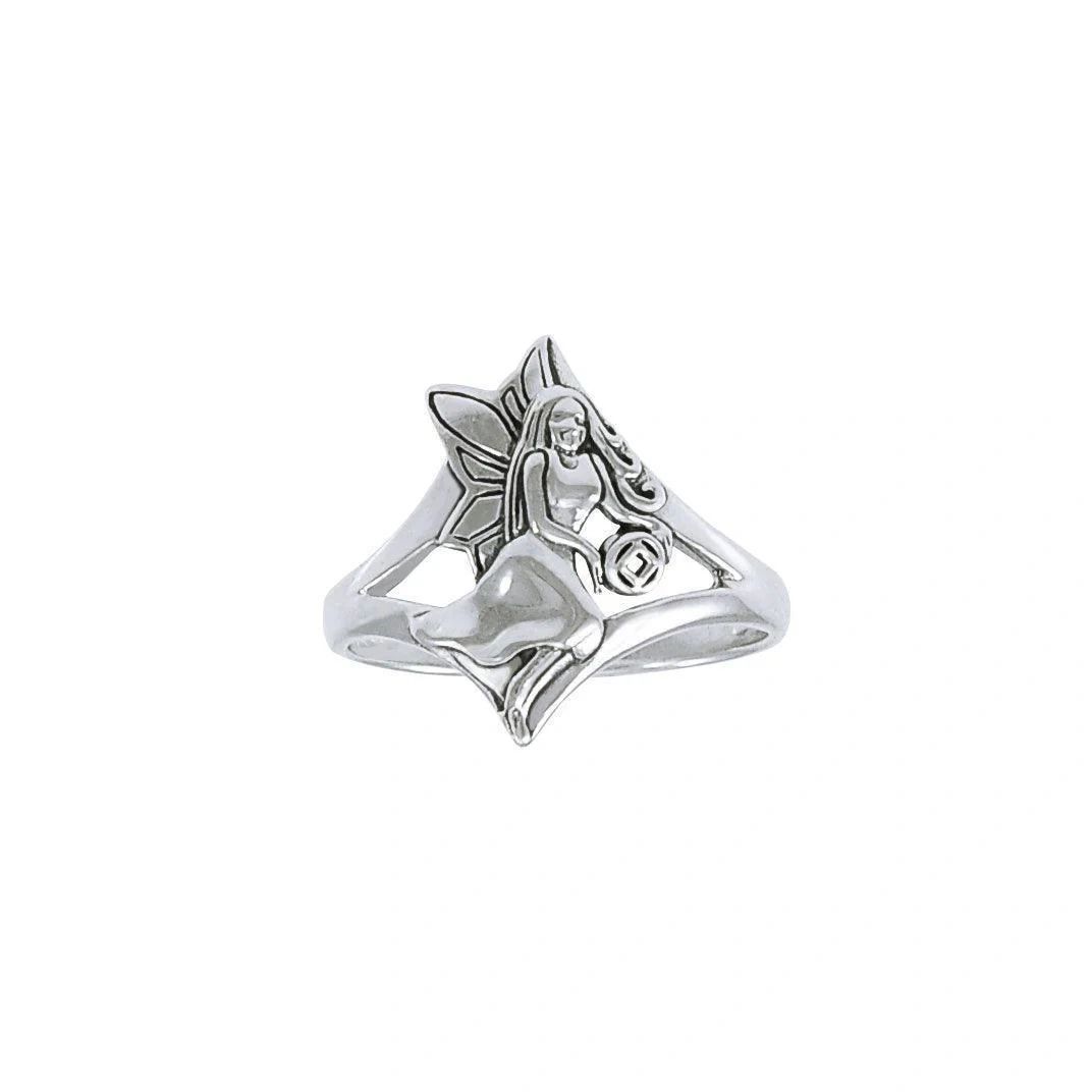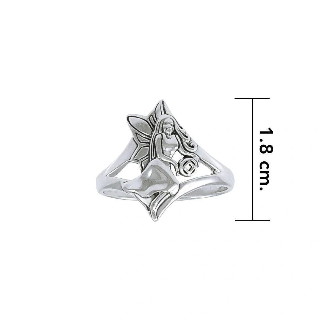 This unique ring is a fairy holding the Narcotics Anonymous Service Symbol in her hands. It’s an open band design with the fairy being 1″ in height. It is intricaltely detailed in Sterling Silver with the Symbol being app 1/16″.