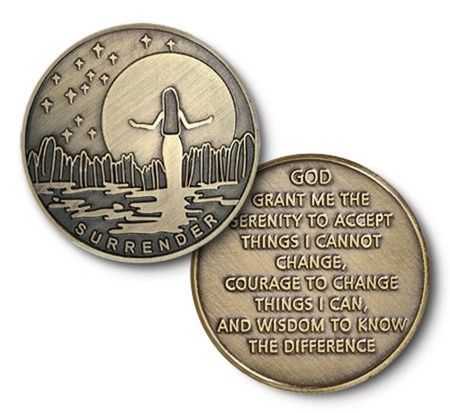 This beautifully designed antiqued bronze medallion has the words “Surrender” on the front, with the Serenity Prayer on the reverse.